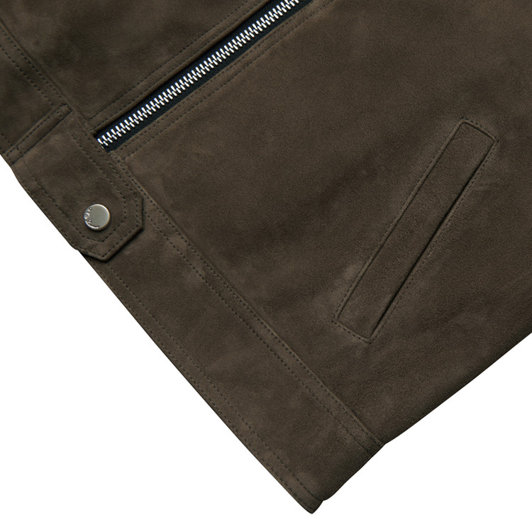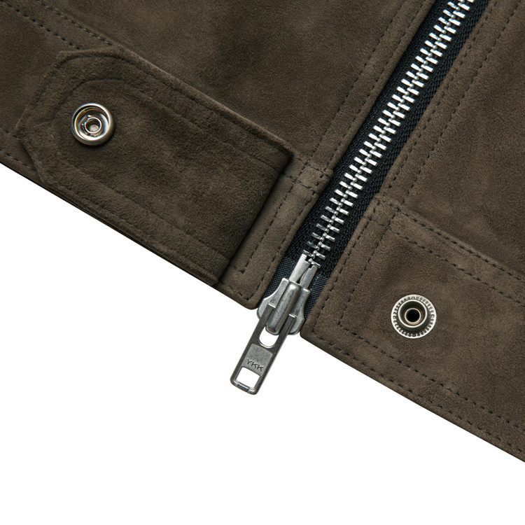 適度な厚みがあり、しっかりとしたハリと耐久性を備え、 長くご愛用いただく中で、スエード特有の上品な色合いと質感が際立つ一着です。