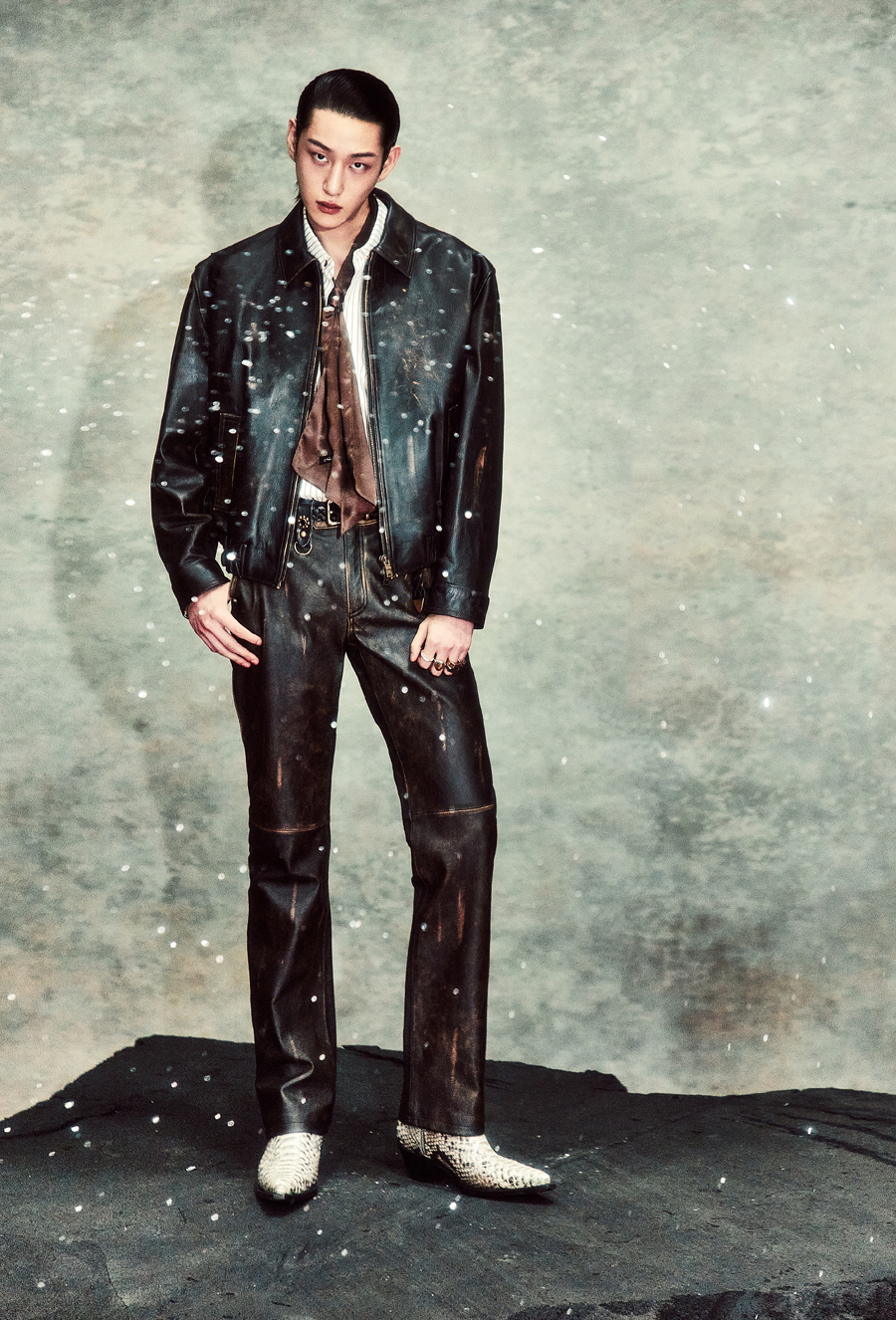 Noir Larmesでは、イタリアのタンナーDEGI PELLAMI社と協業し、環境に配慮した原料を用いたベジタブルタンニン鞣しによってディストレス効果を実現しました。クロム(化学染料)を用いた一般的なディストレスレザーとは異なり、Italy Vegetable-Tanned Crack Distressed Leather (Full Grain) はより高品質で、自然で深みのあるヴィンテージ感を特徴としています。