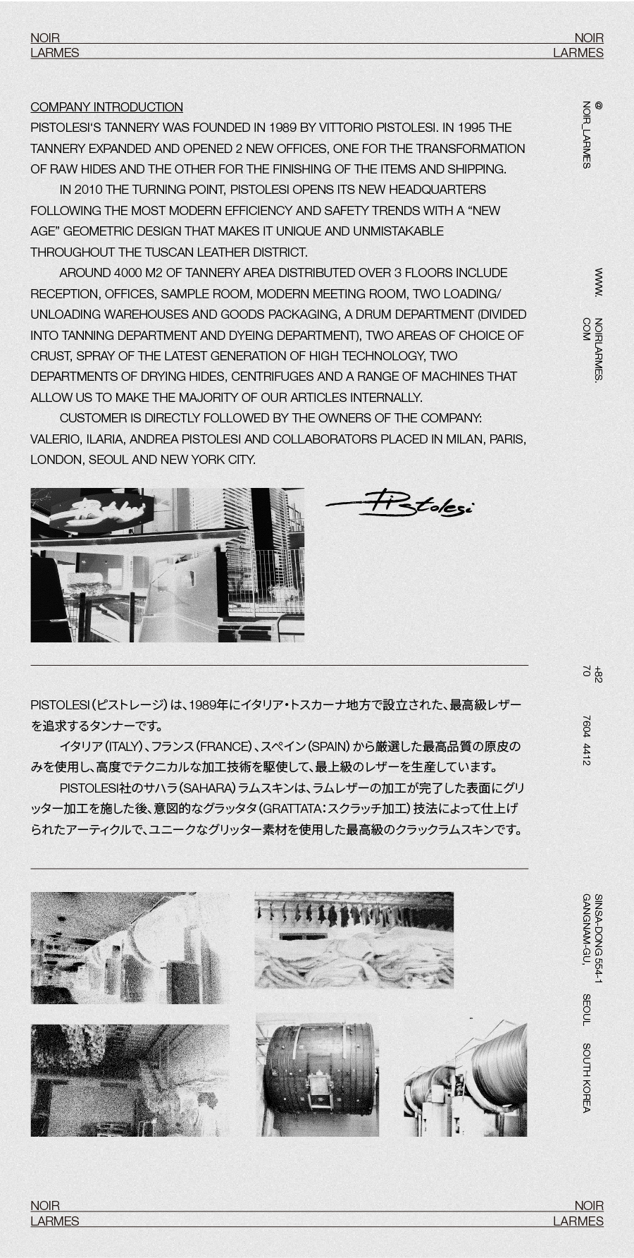 Noir Larmesでは、イタリアのタンナーONLY FRANK社との16年にわたる協業を通じて、タンニン鞣しをベースとした最高級アーティクル「ARTHUR」を独自に開発しました。