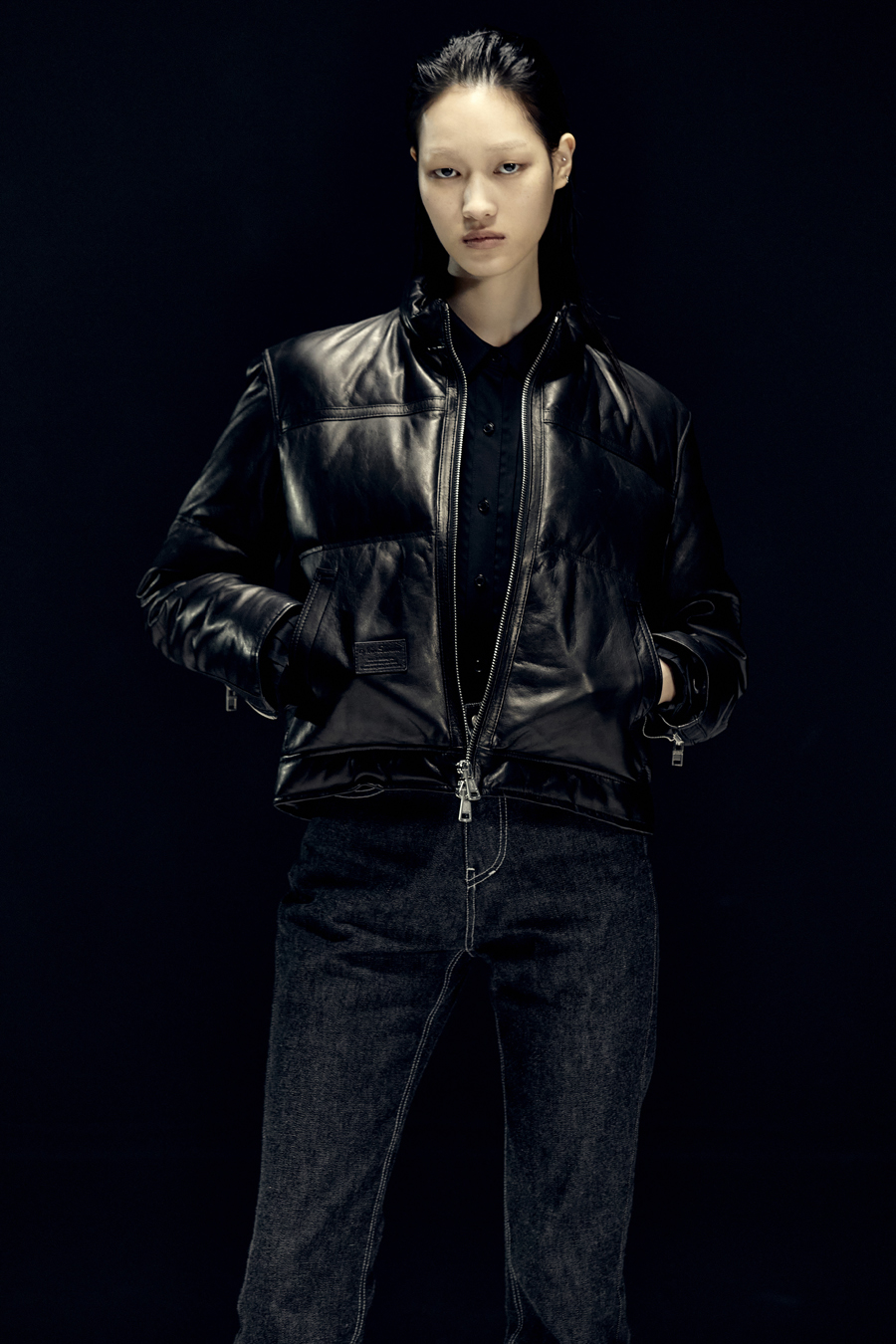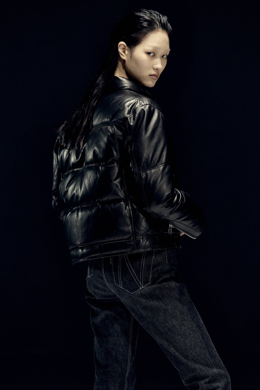 GOTHUAL 시리즈의 블랙라벨 시그니처 시베리안 구스 다운 레더 재킷.