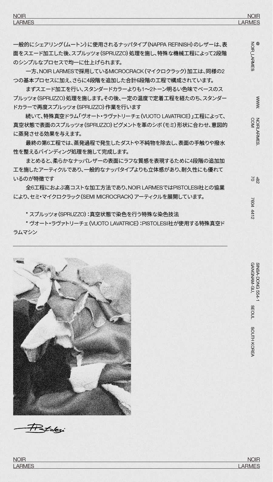 最高級のファータンナーであるイタリアのPistolesi社が独自に開発した、染色前のヘアオンカーフスキン(ウェットブルー)に、レガトゥーラ(legatura)とタイ&ダイ染色工程を施した最高級のBABY CALF PARISアーティクルです。